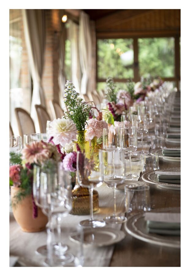Gli allestimenti floreali della cerimonia civile e il bouquet della sposa sono stati realizzati dal fiorista Fate & Fiori di Sarezzo, mentre le composizioni all’interno del salone, dove si è tenuta la cena, e le decorazioni per i tavoli sono stati realizzati da Bohem di Sarnico.