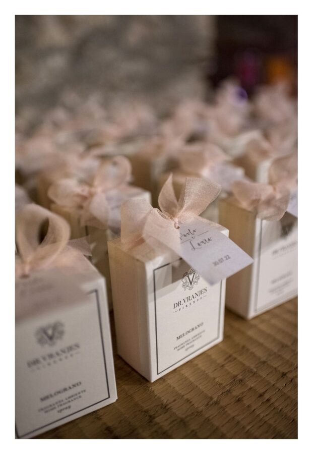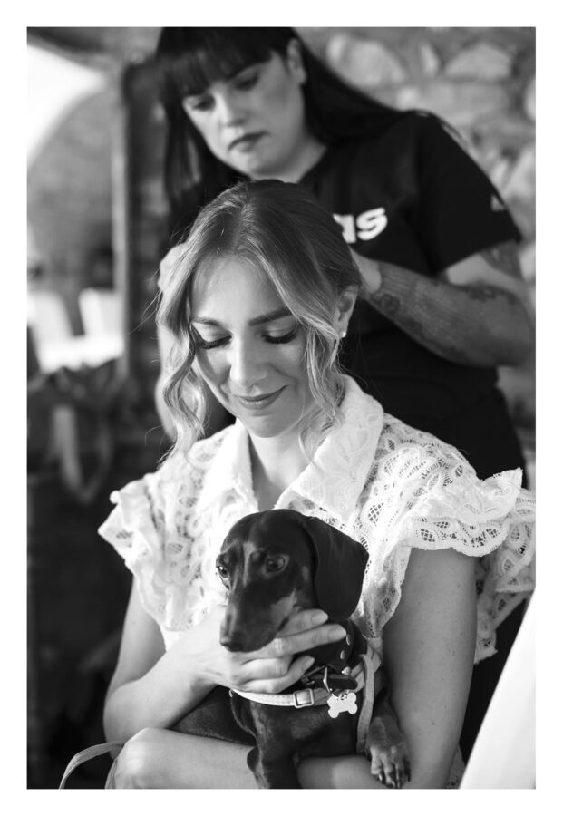 Preparazione: I preparativi di entrambi gli sposi si sono svolti quasi contemporaneamente in due stanze diverse della location. La makeup artist e hairstylist Alessandra Sangiorgio ha seguito le fasi del trucco e dell’acconciatura di Laura.